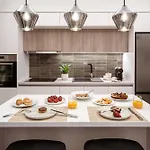 Les options indépendantes de ces propriétés Theatro Living In Elegance - Luxury Apartments In Hersonissos comprennent une cuisine équipée équipée d'un four et d'un lave-vaisselle.